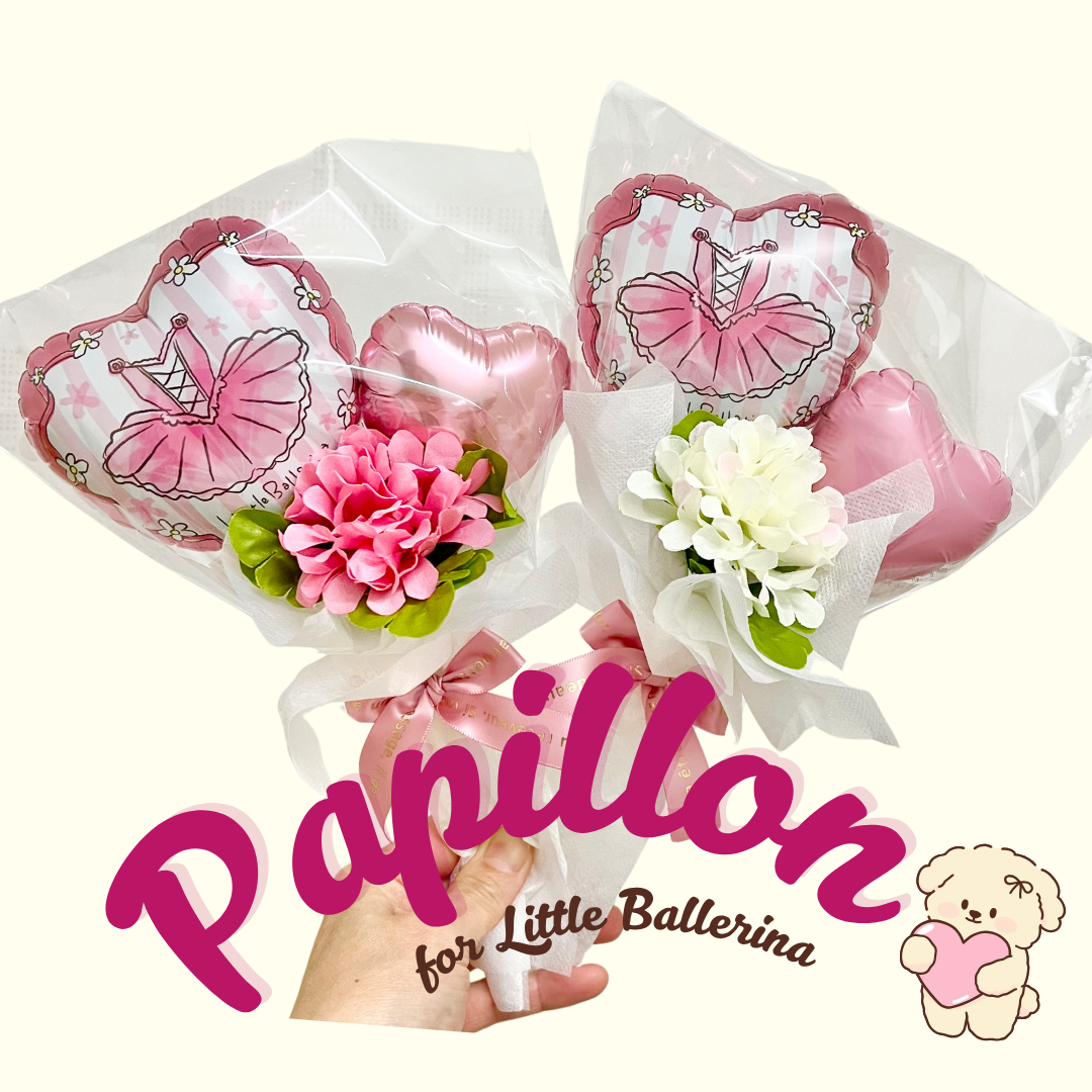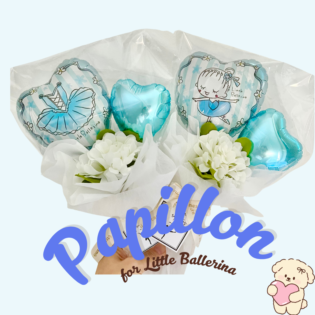 ピンクかライトブルーのどちらかからお選びいただけます。 どちらのカラーも表はバレリーナちゃん、 もう片面はレオタードの柄のバルーンになります💗