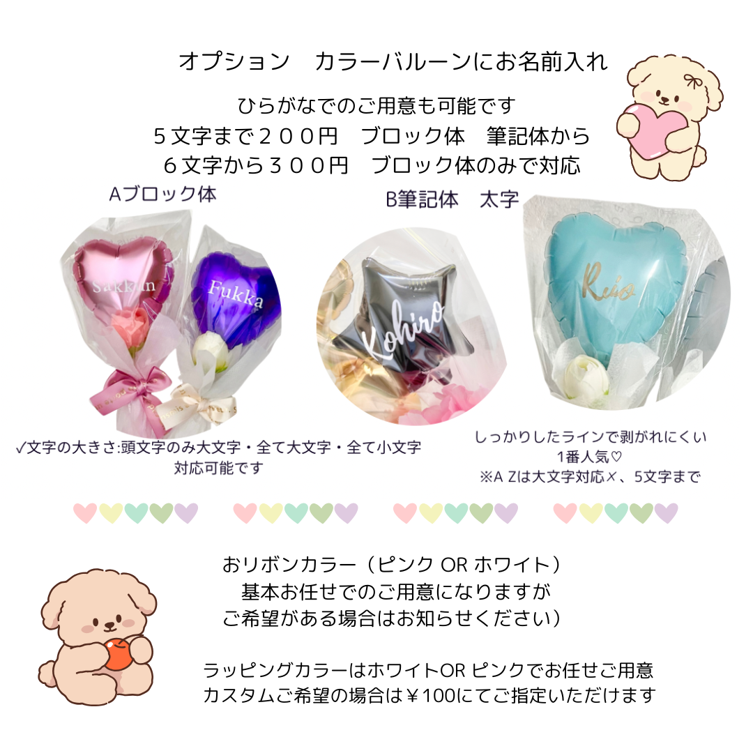 複数ご注文の場合それぞれのご指定もOKです 選べるサイドバルーンは10カラーございます💗